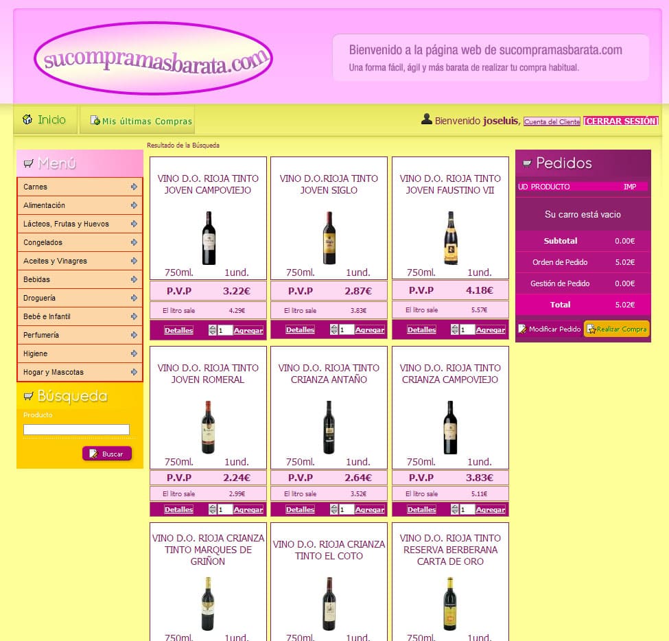 Desarrollamos la plataforma de ventas completa del supermercado sucompramasbarata esta plataforma permitia comparar precios de 5 supermercados mas importantes de madrid españa y la web determinaba los precios mas baratos, permitía realizar las compras, programar los envios, y pagar a traves de la web. La tienda actualizaba mas de 100 mil productos a diario. Muestra del Trabajo realizado junto a Nauta.